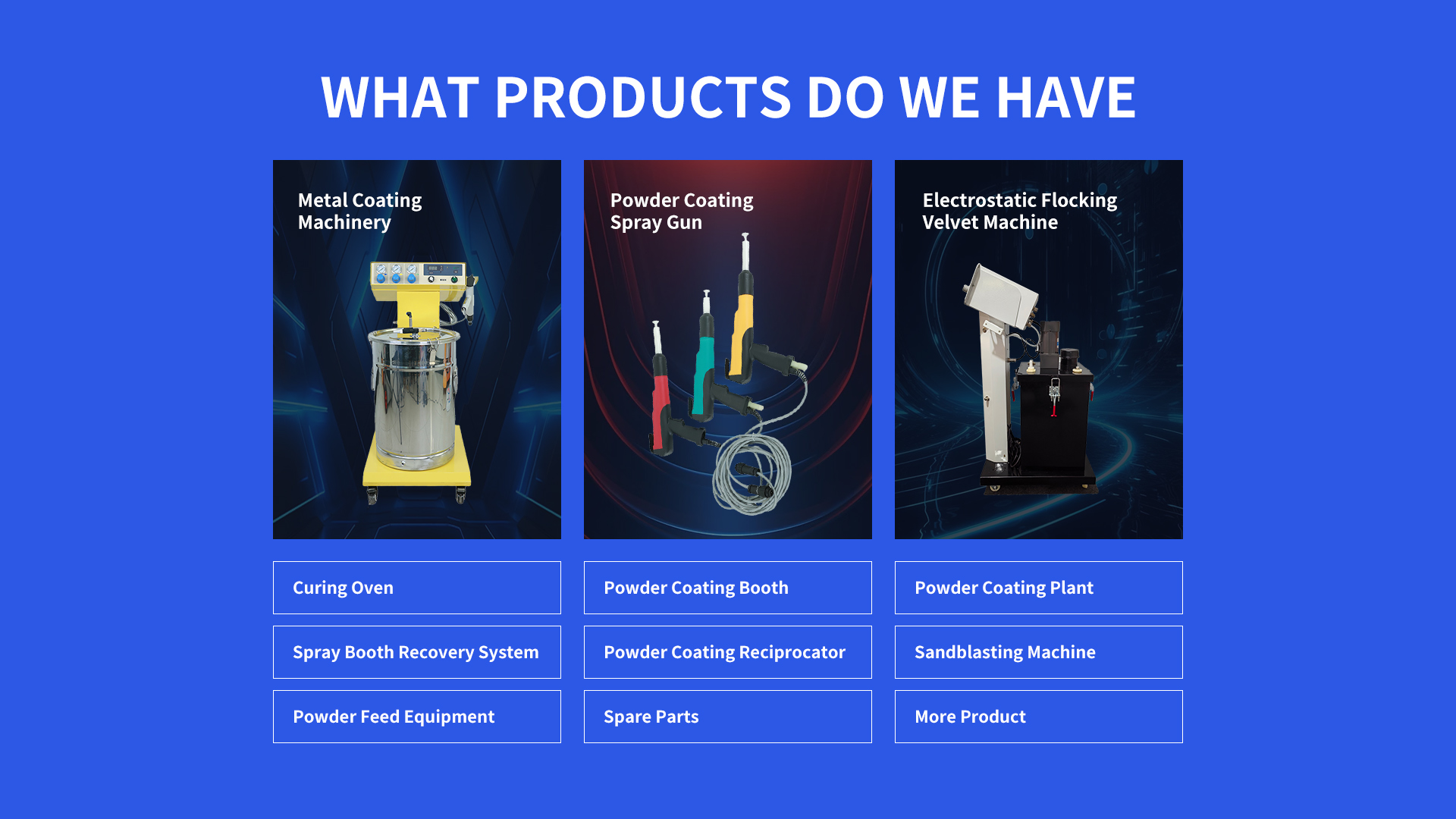 Reliant Powder Coating Equipment offers industrial-grade finishing systems known for their durability and consistent performance. As a trusted name in the coating industry, Reliant provides complete powder coating solutions featuring advanced electrostatic technology with voltage ranges from 50-100kV.